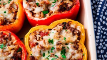 INGREDIENTS: 1/2 c. uncooked rice 2 tbsp. extra-virgin olive oil, plus more for drizzling 1 medium onion, chopped 1 tbsp. tomato paste 3 cloves garlic, minced 1 lb. ground beef 1 (14.5-oz.) can diced tomatoes 1 tsp. dried oregano Kosher salt Freshly ground black pepper 6 bell peppers, tops and cores removed 1 c. shredded […] More